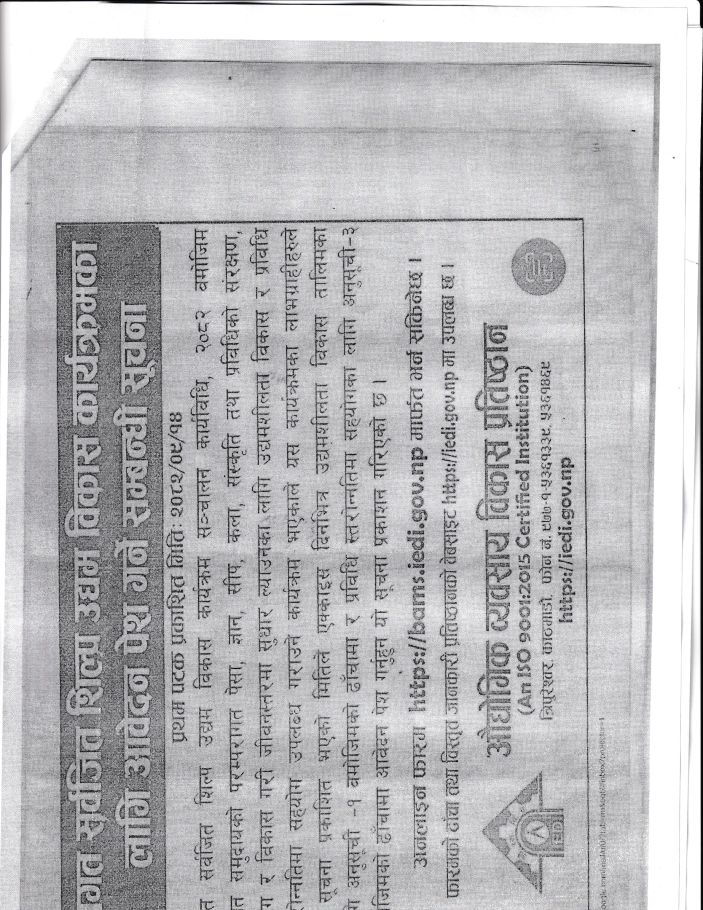 » भवग सर्वजित शिल्प उद्यम विकास कार्यक्रमका लागि आवेदन पेश गर्ने सम्बन्धी सूचना