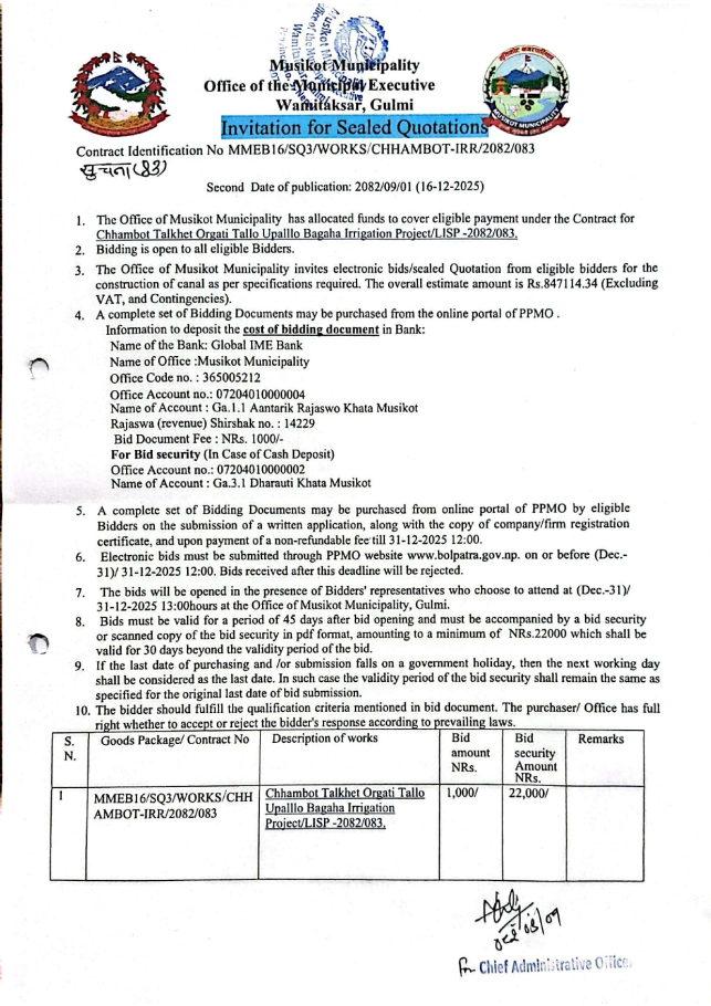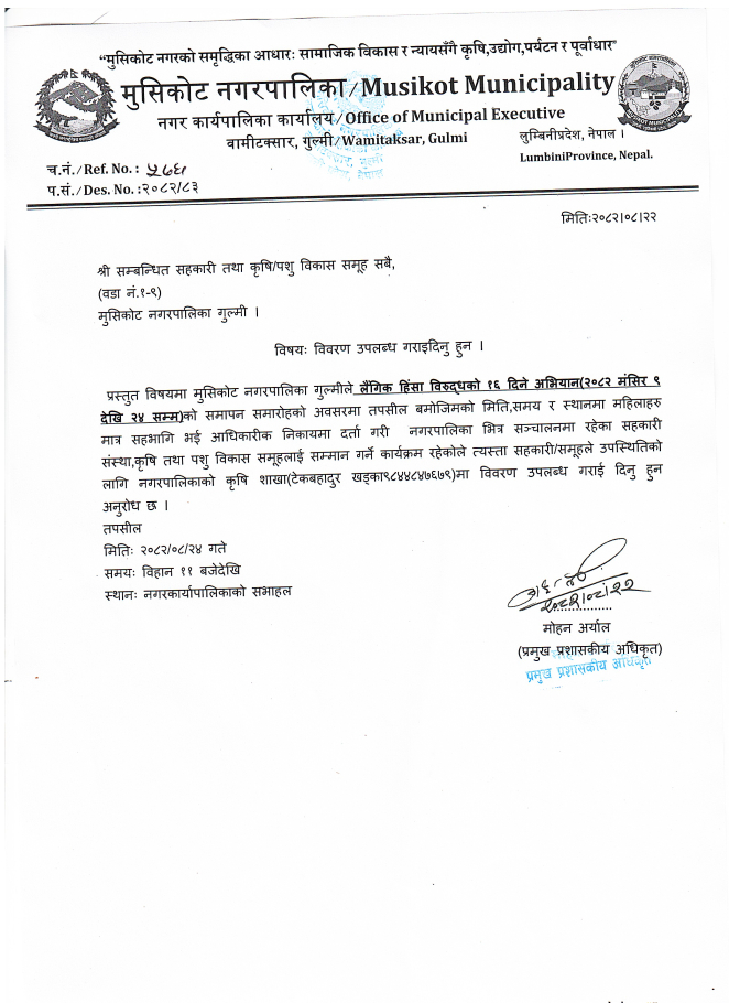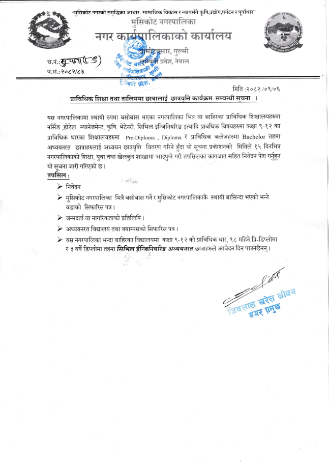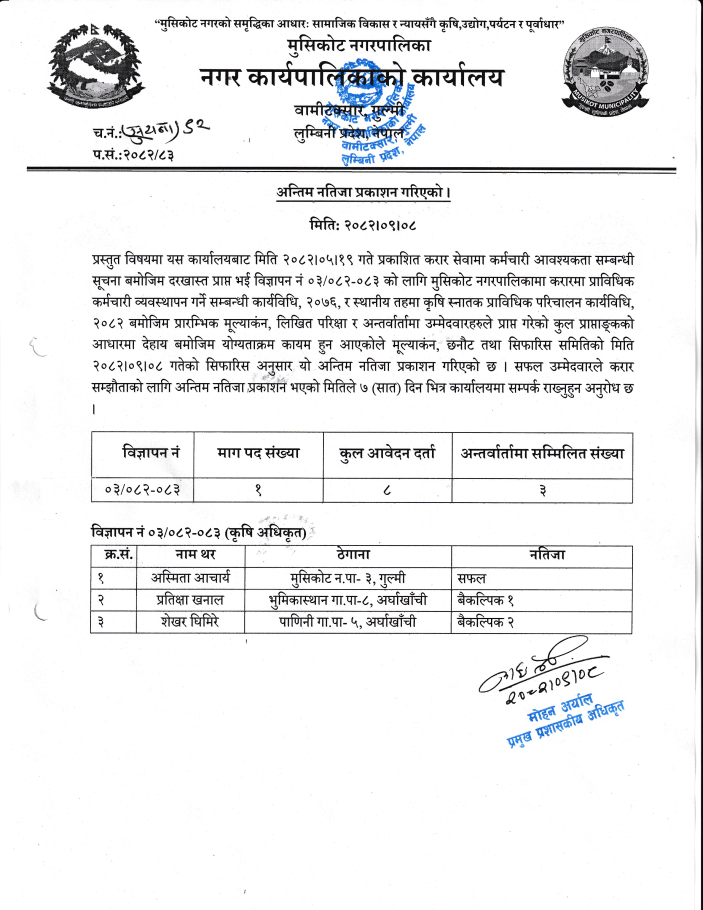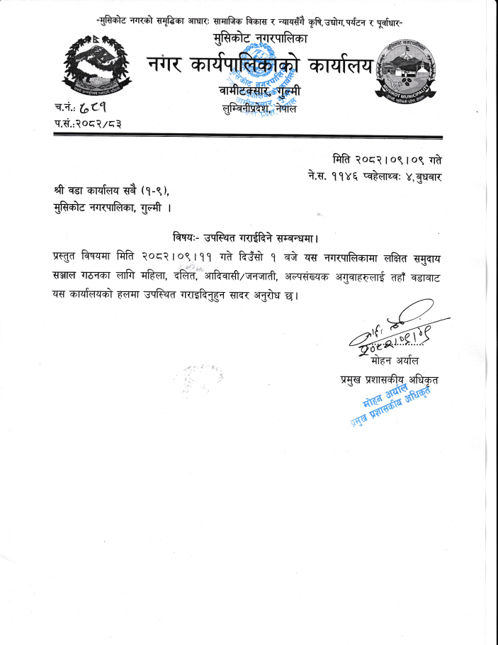 प्रस्तुत सम्बन्धमा यस नगरपालिकाद्दारा विज्ञापन गरिएको सूचना प्रविधि अधिकृत(क्ष्त् यााष्अभच) को पदमा नियुक्ति सम्बन्धी विज्ञापन यस नगरपालिकाको कार्यपालिकाको बैठकबाट सम्पूर्ण रुपमा रद्द गर्ने निर्णय गरेको हुदा सरोकारवाला सबैको जानकारीको लागि यो सूचना प्रकाशित गरिएको छ ।