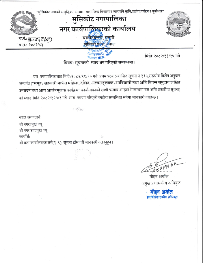 सूचनाको म्याद थप गरिएको सम्बन्धमा।